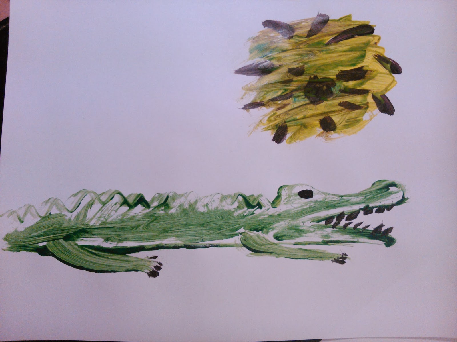 Här sysslar vi med fin konst. Moderna museet och national museet har hört av sig och vill köpa in tavlorna. Skulle nån av er köpa en tavla så får ni skynda er, ska vi säga 20 miljoner styck? Lilleman jobbar modernistiskt och jag mer åt Bruno Liljefors hållet.
